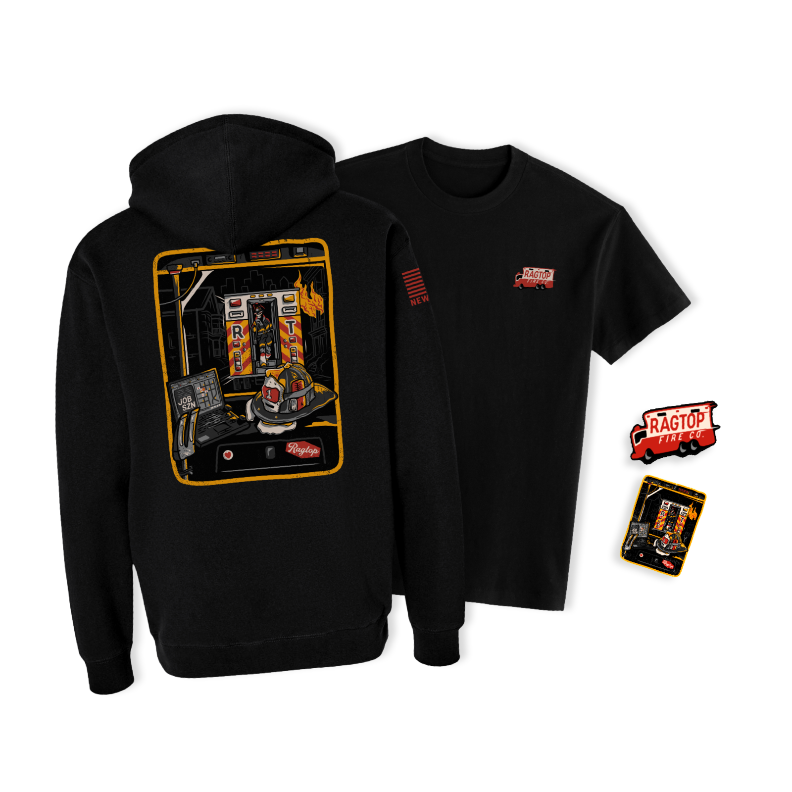 Artwork by The Tailboard Creative & RagTop Fire, Stickers by Firehouse Pride, and Printing by Brass City Ink.