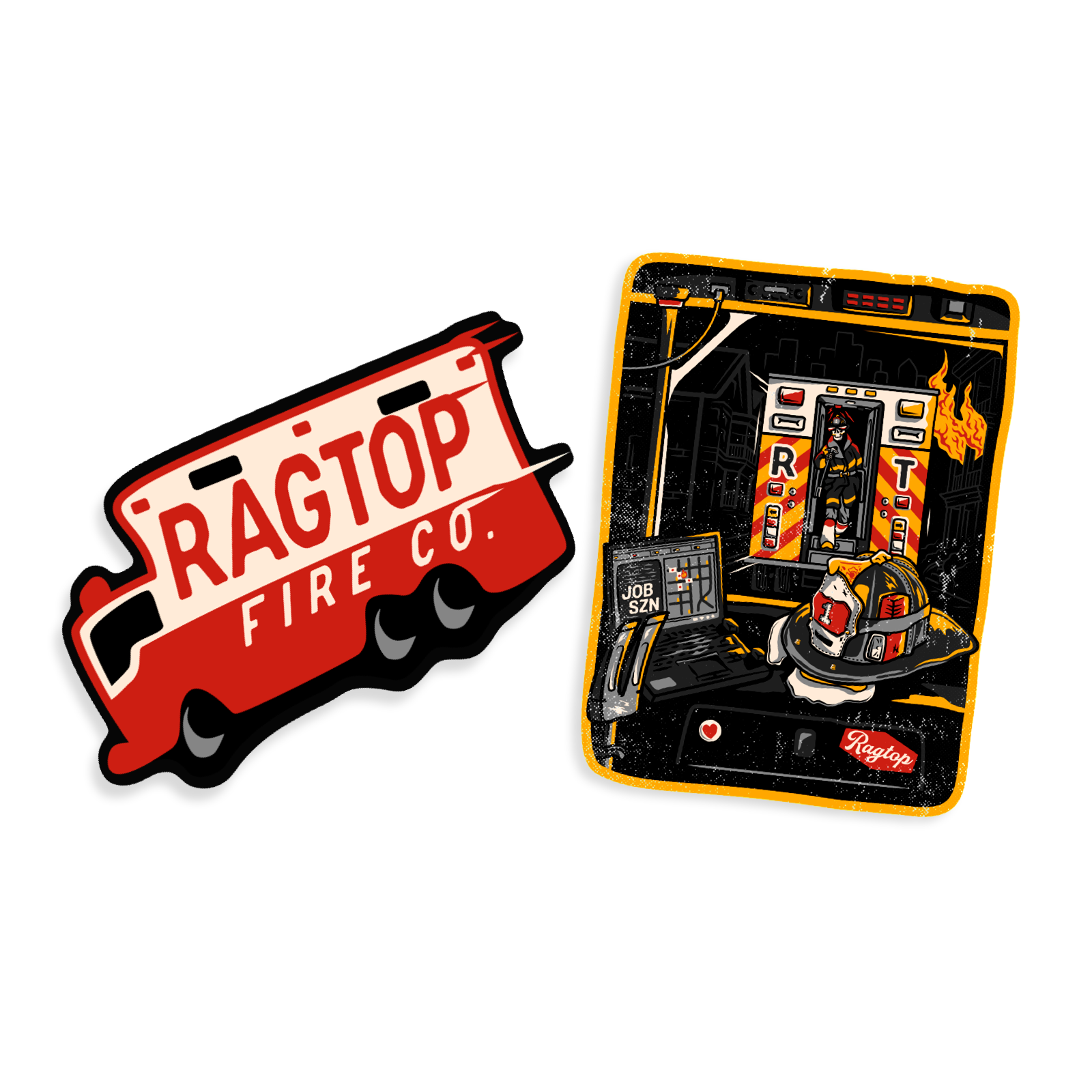 Artwork by The Tailboard Creative & RagTop Fire, Stickers by Firehouse Pride, and  Printing by Brass City Ink.