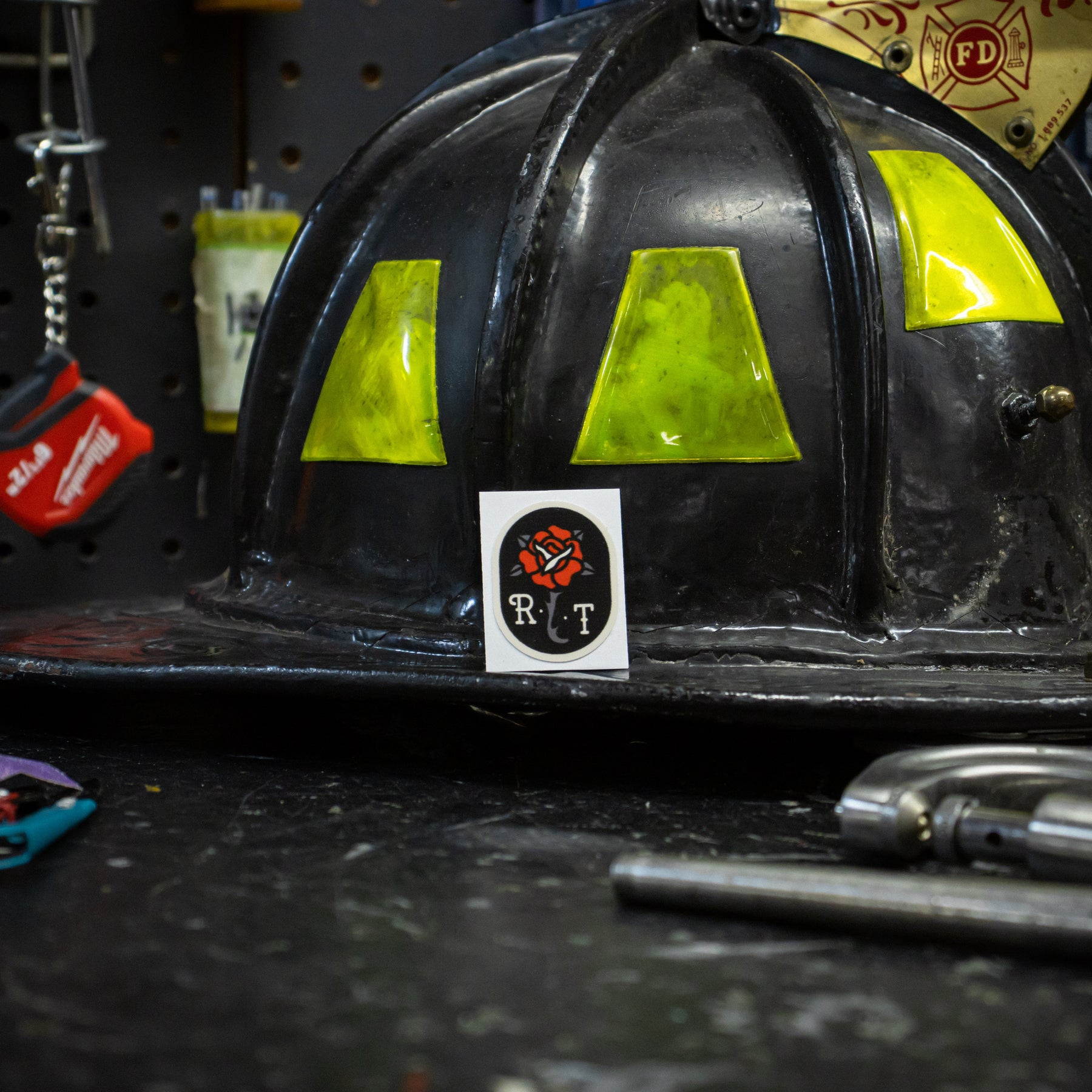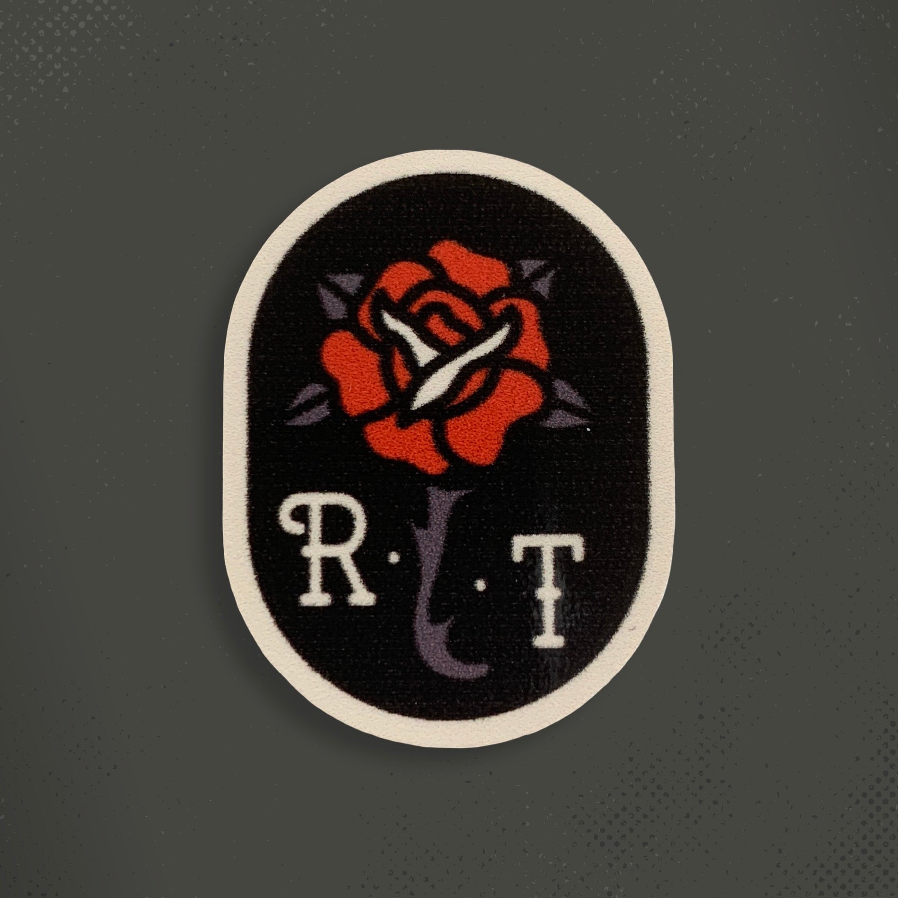 Our 'RT Rose' design printed on a 1 ½" heavy duty vinyl sticker with a gloss finish. Artwork by JP Sokolowski & RagTop. Stickers made by Firehouse Pride.