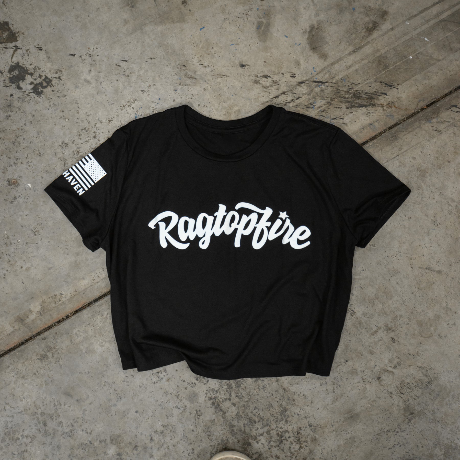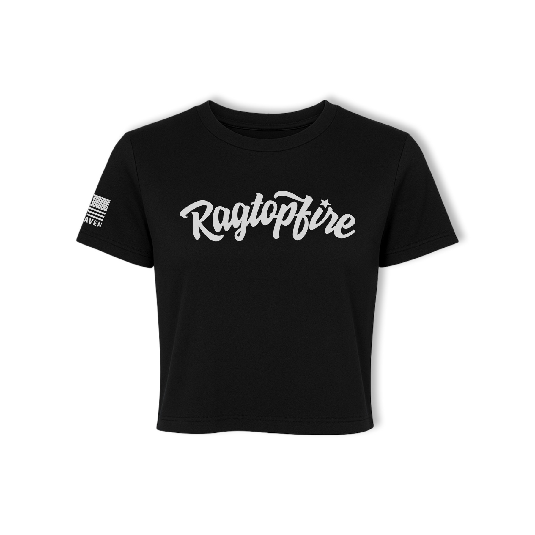 The "RagTop Hoodson" script printed on a lightweight, modest cropped tee. Based on the fit, it is recommended to go up one size.