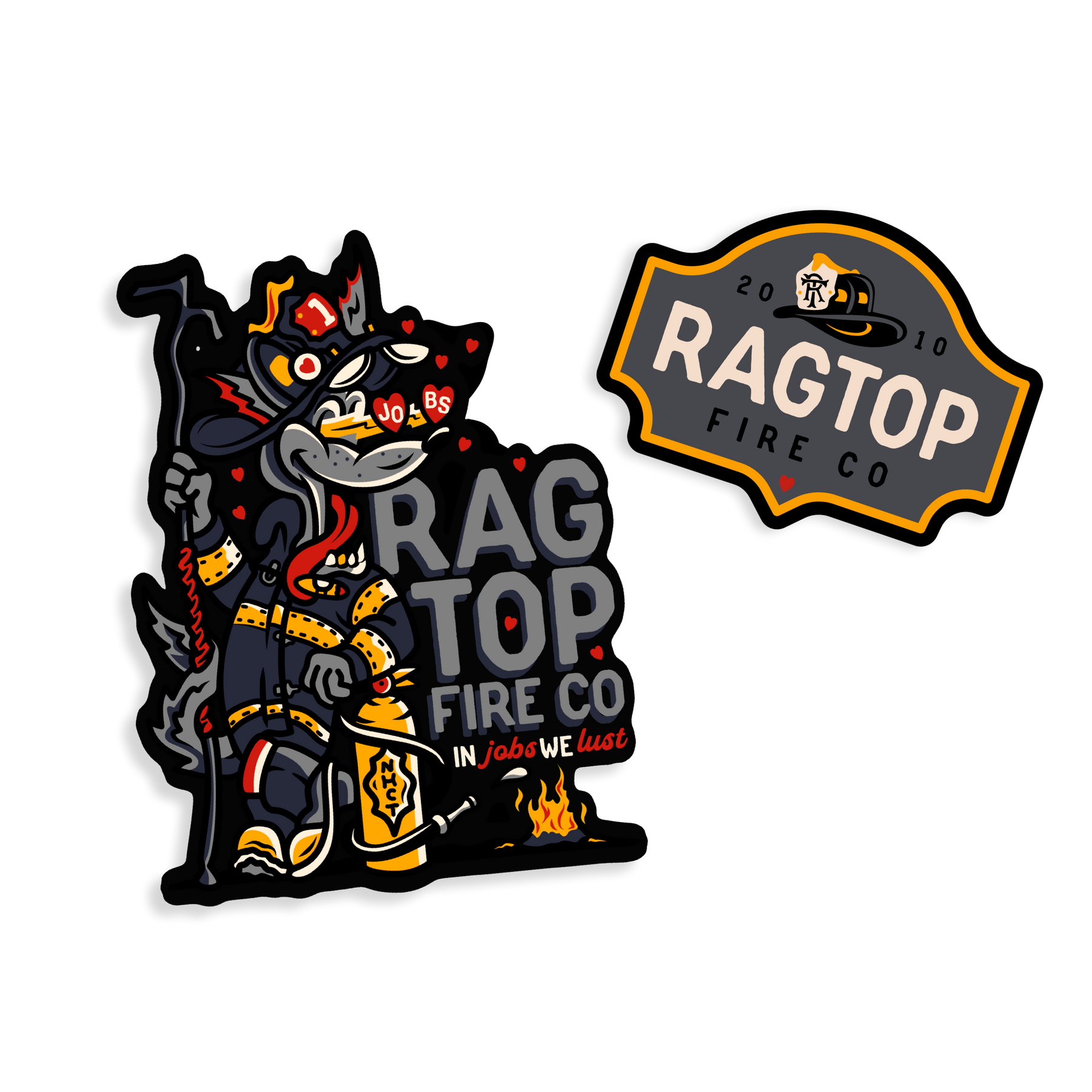 - Ilustraciones de JP Sokolowski y RagTop Fire e impresas por Brass City Ink.
